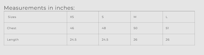 Sizes XS S M L