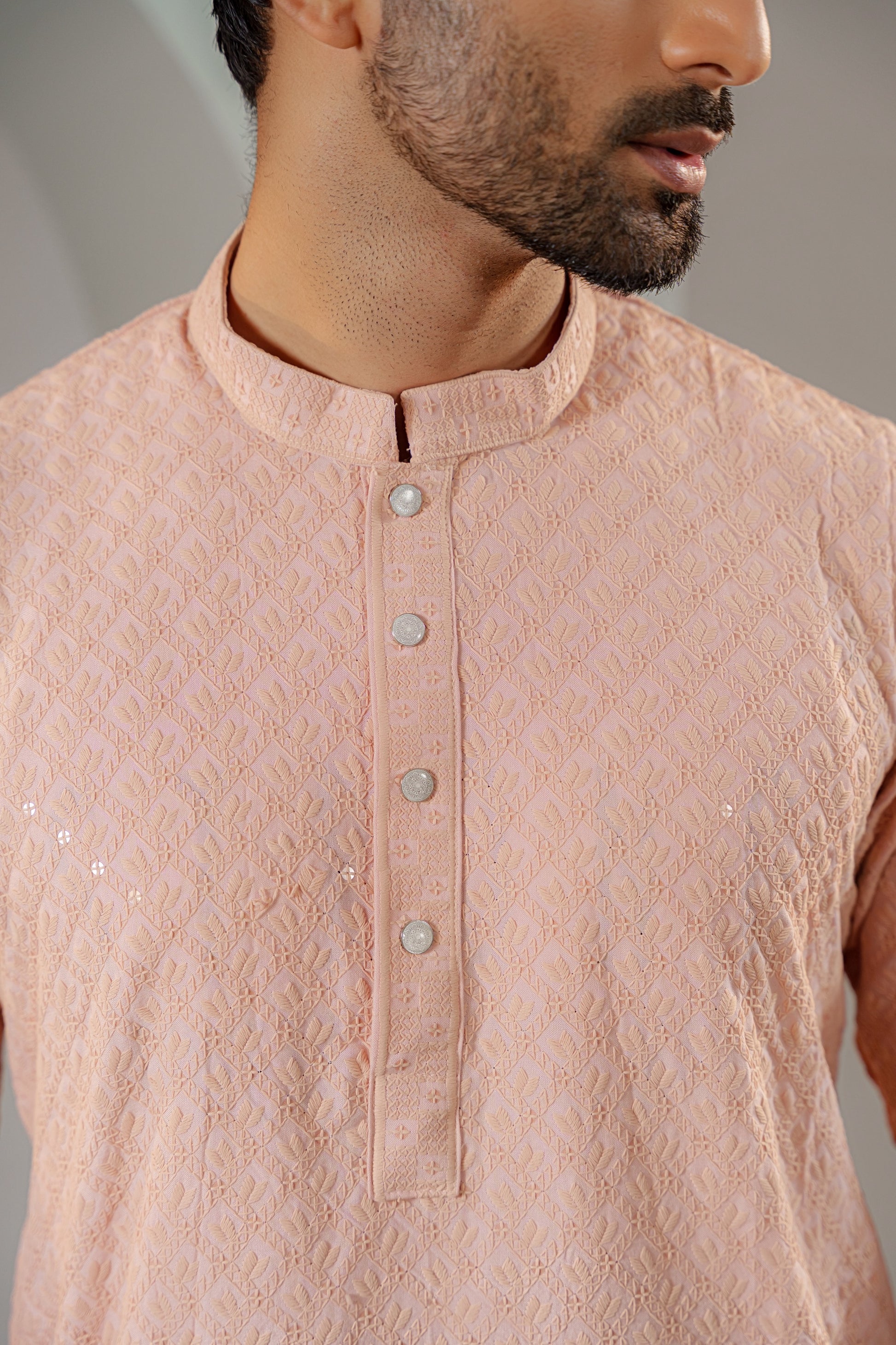 The Ayaaz Embroidered Panjabi in Peach offers a refreshing take on classic ethnic wear. The delicate embroidery on the collar and button plate enhances its refined look, while the soft peach tone adds a subtle yet distinguished charm. Designed with a short-length kurta silhouette and tailored from 100% cotton, this Panjabi is perfect for warm-weather festivities, offering both comfort and effortless sophistication.