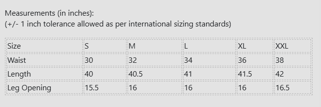 (+/- 1 inch tolerance allowed as per international sizing standards)