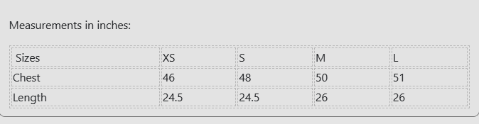 Sizes XS S M L