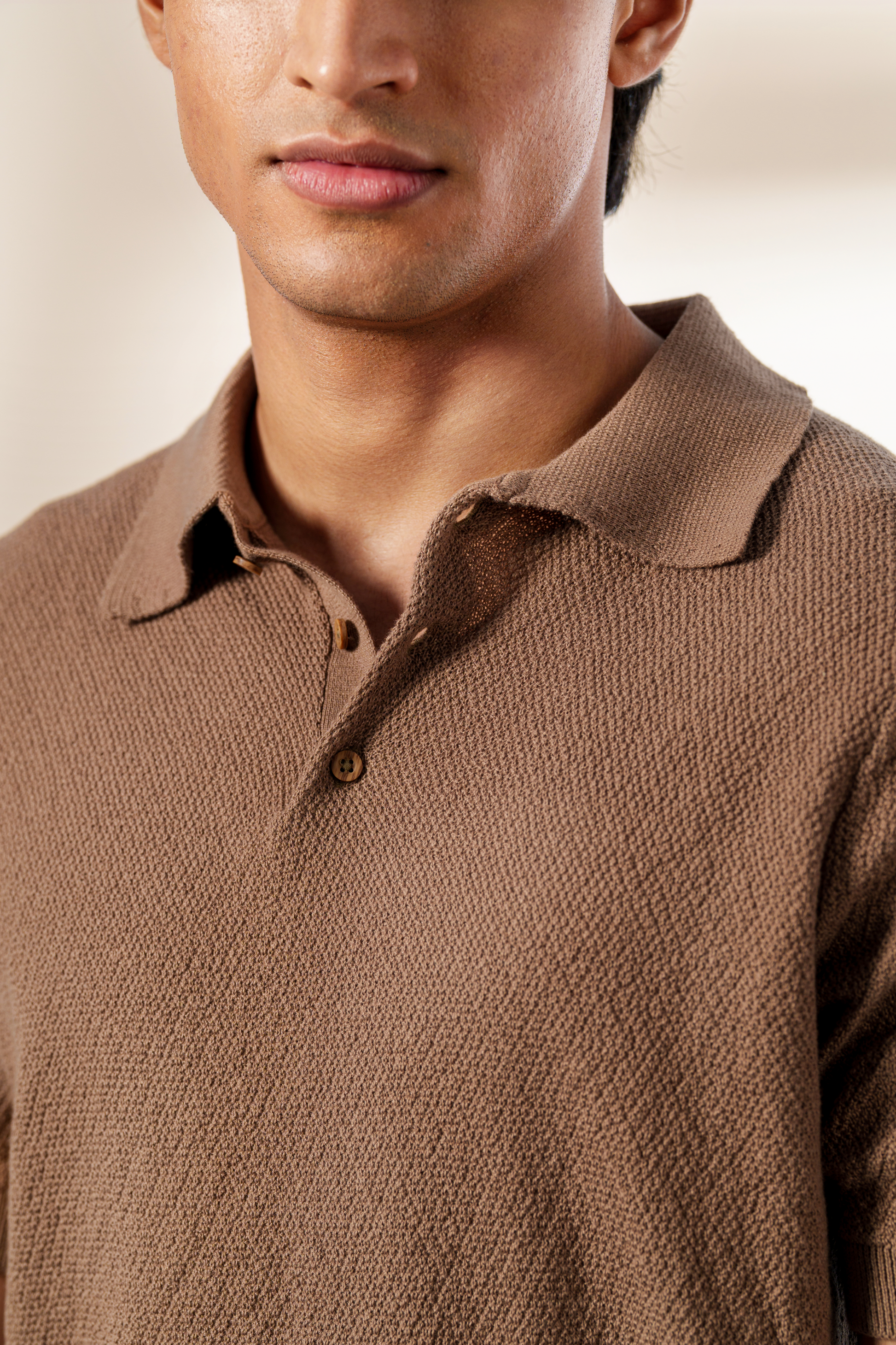 The Florence Mocha Knit Polo carries the same sophisticated design as the Florence Blanco, now in a warm mocha brown shade. With its understated elegance and tonal contrast buttons, this knit polo offers timeless versatility for any occasion.