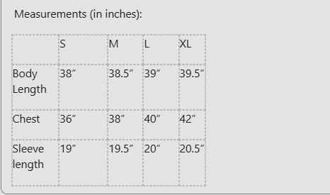 Measurements (in inches):