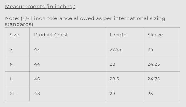 Product Chest Length Sleeve