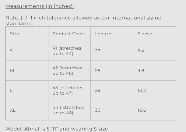 Model: Ahnaf is 5' 11" and wearing S size