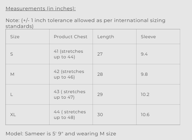 Model: Sameer is 5' 9" and wearing M size