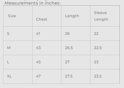 Measurements in inches: