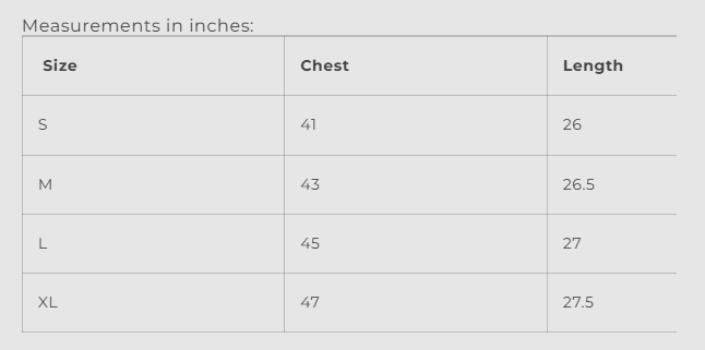 Measurements in inches: